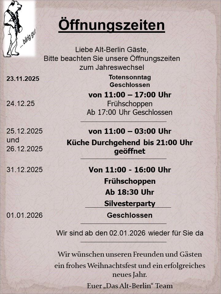 Das Alt-Berlin verfügt über einen großzügigen Raucherbereich, in dem auf einem großen Bildschirm aktuelle Sportveranstaltungen gezeigt werden. Aber auch Nichtraucher können bei uns – ohne Qualmbelästigung – eine vergnügte und entspannte Zeit verbringen.
