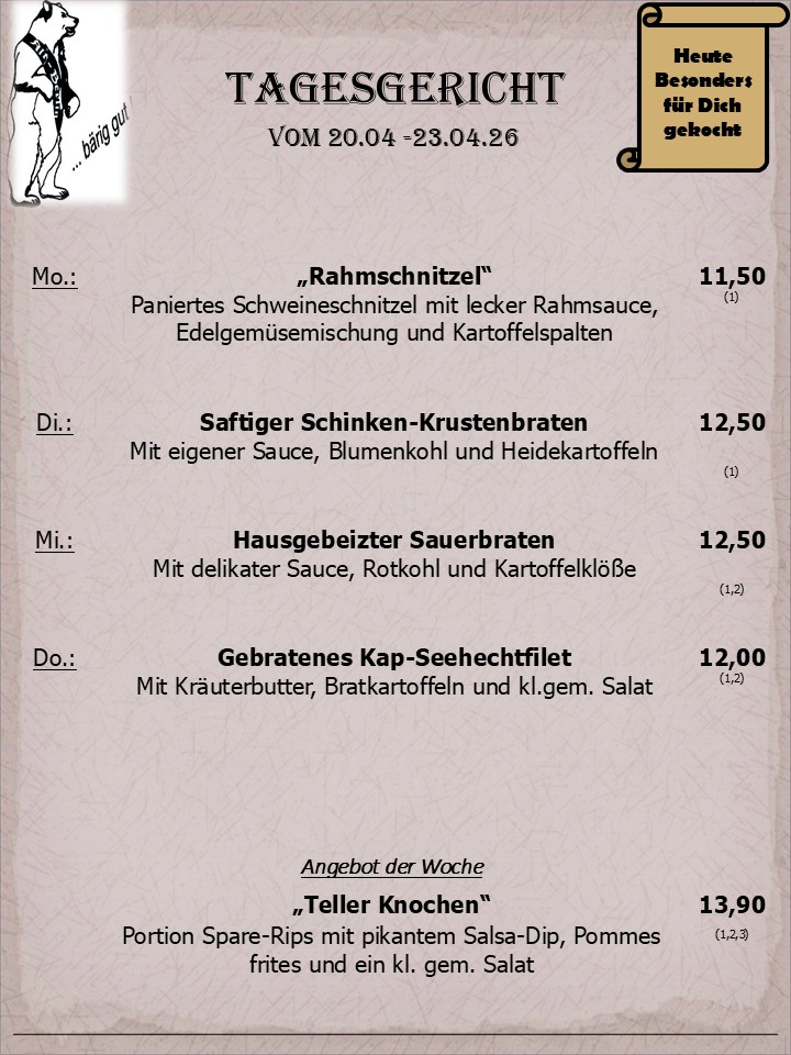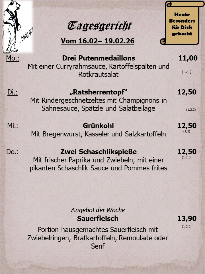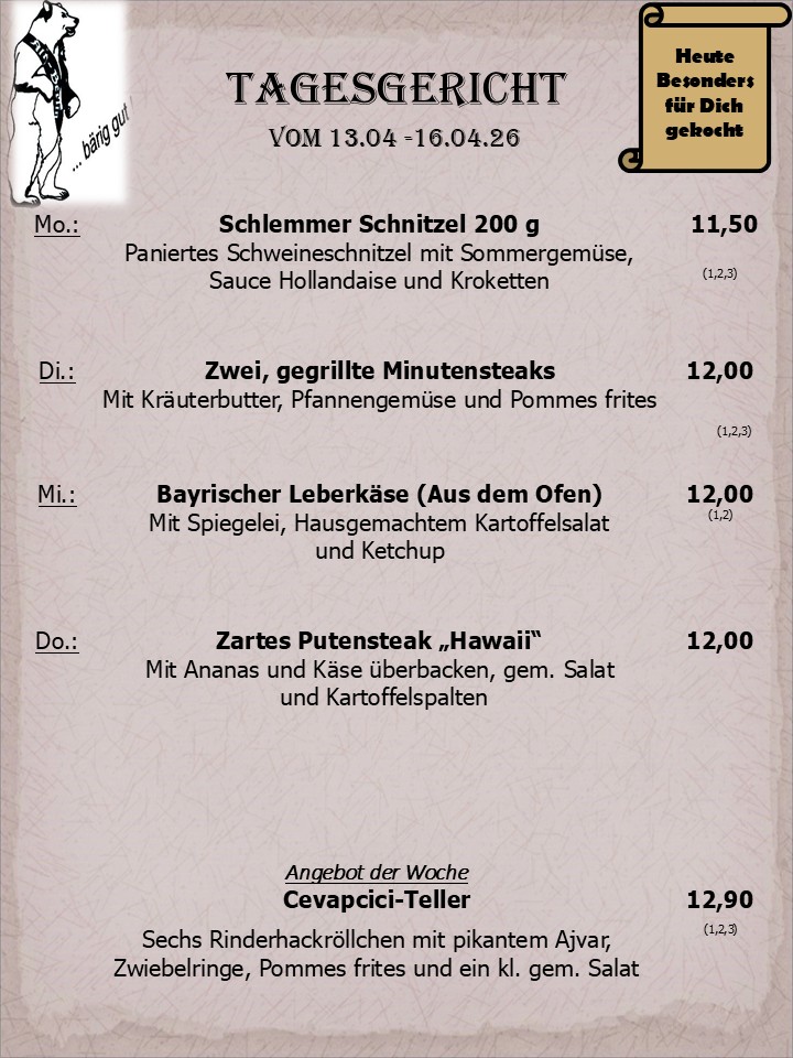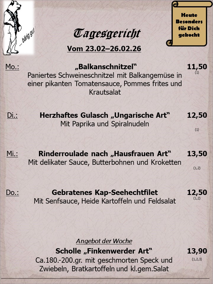 Für den kulinarischen Genuss sorgt unsere gutbürgerliche und internationale Küche, die für jeden Geschmack etwas bietet: