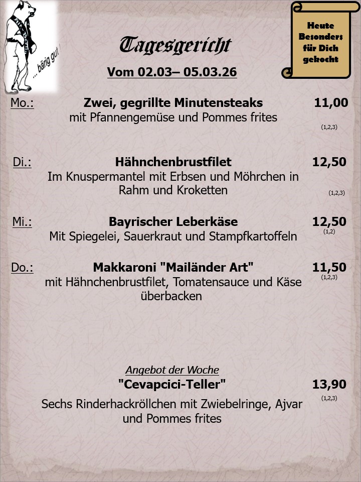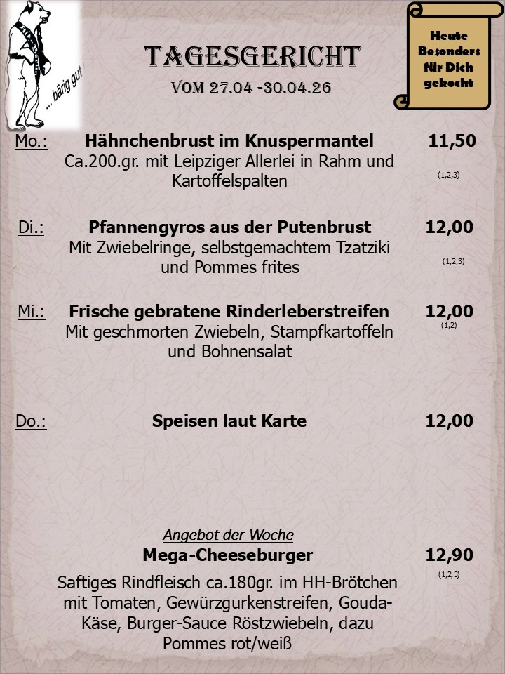 Von klassischen Baguettes, frischen Salaten und herzhafter Pizza über deutsche Spezialitäten wie Currywurst und Schweine- oder Kalbsschnitzel bis hin zu feinem Fisch, exquisitem argentinischem Roastbeef und unseren beliebten, abwechslungsreichen Tages- und Wochengerichten. Die Auswahl ist groß und lädt zum Verweilen ein.